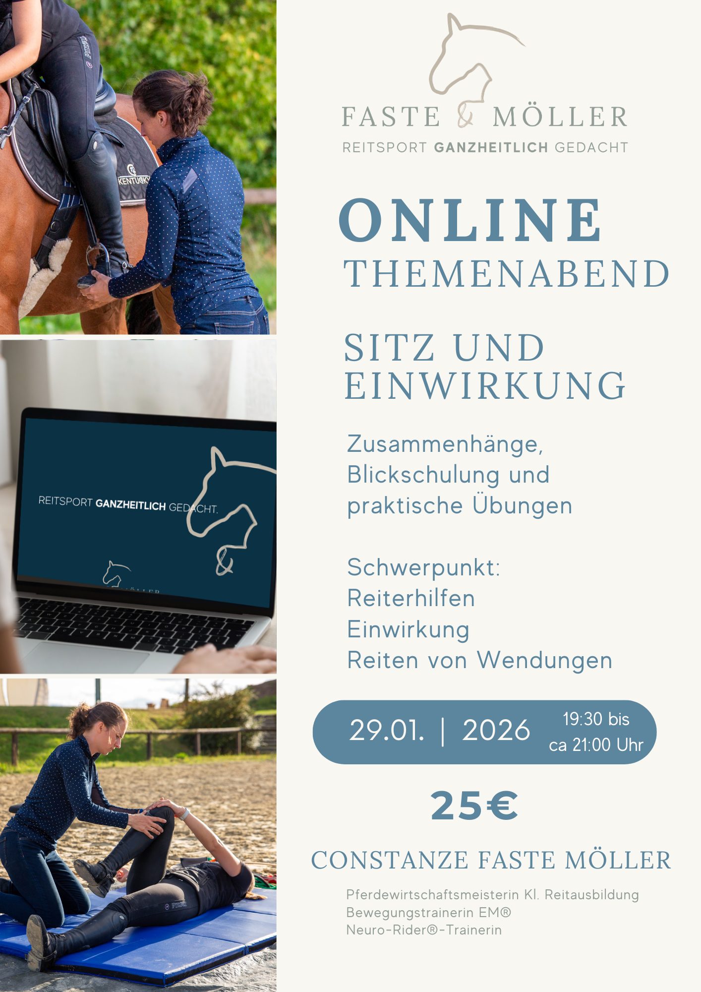 Tauche mit uns in die Zusammenhänge von Reitersitz, Bewegungsfluss & feinen Hilfen ein.